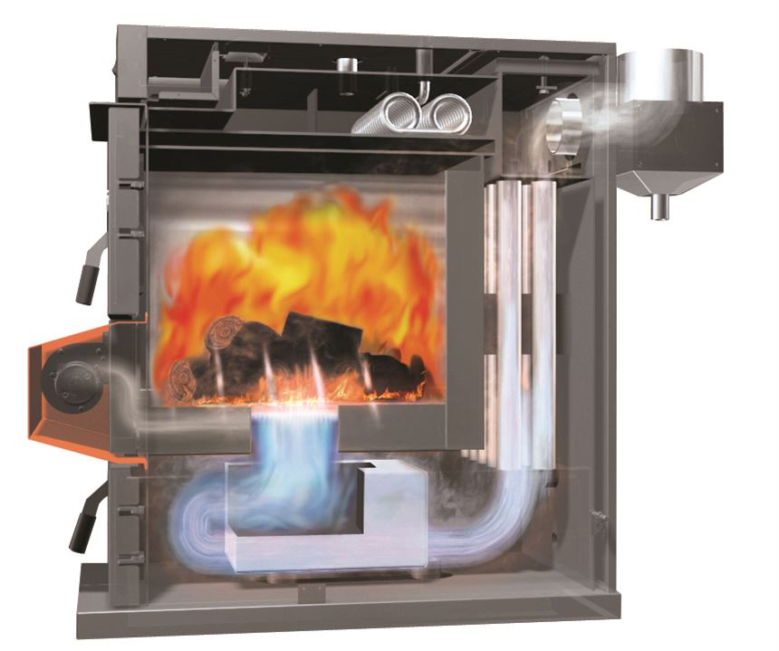 Ο κύριος θάλαμος καύσης είναι ειδικά σχεδιασμένος έτσι ώστε να εγγυάται υψηλή απόδοση στην καύση του ξύλου . Τα  αέρια που υπάρχουν από το ξύλο στον κύριο θάλαμο καύσης καίγονται πλήρως μόλις έρθουν σε επαφή με τον δευτερεύοντα αέρα διαμέσου του κεραμικού στομίου που υπάρχει στον θάλαμο καύσης.
